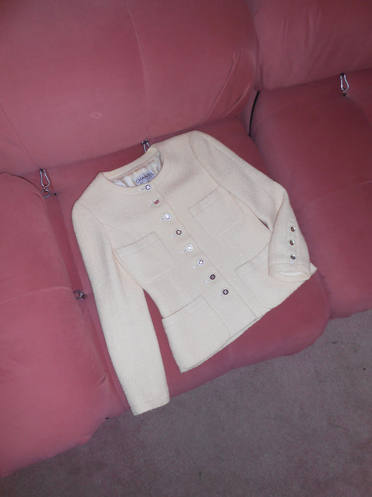 CHANEL BY KARL LAGERFELD CRUISE 1995 TWEED SKIRT SUIT WITH MIRROR BUTTONS