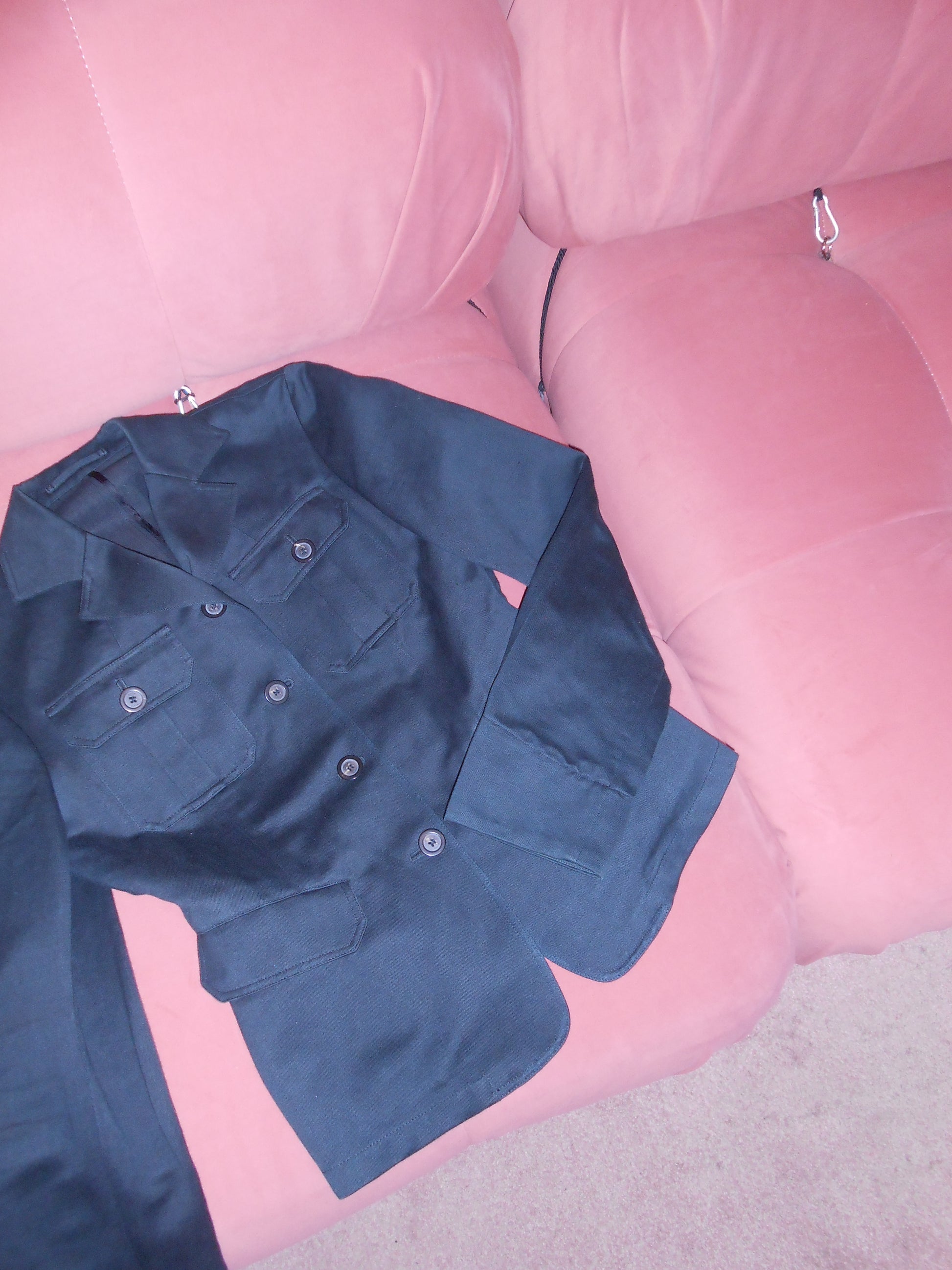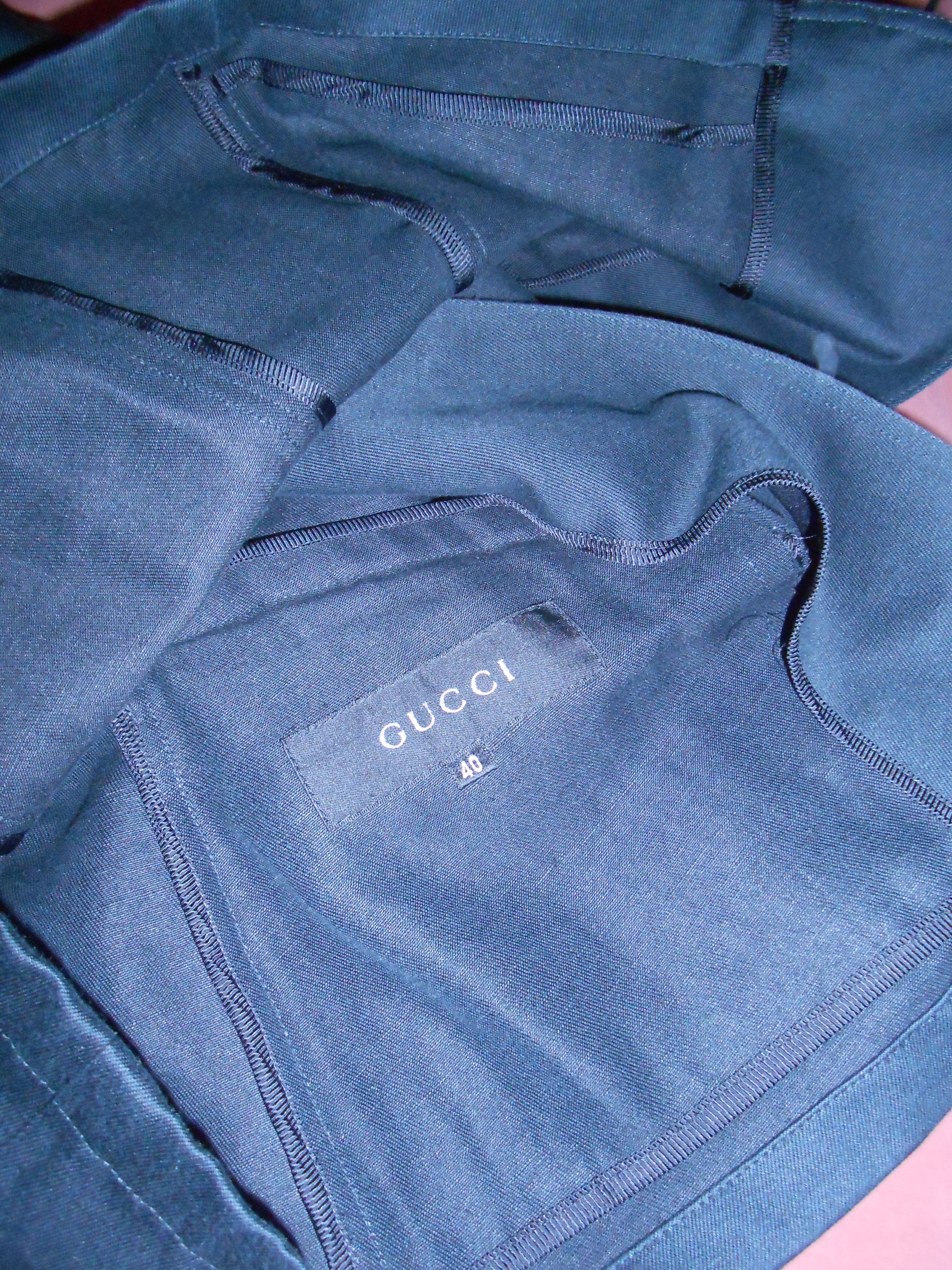 DESCRIPTION : Military style jacket from Tom Ford's 1999 collection for Gucci. Done in cotton & linen, the jacket has a great structure to it. Single button closure with four pockets at the front. Looks very chic styled as a top with denim or a trouser.