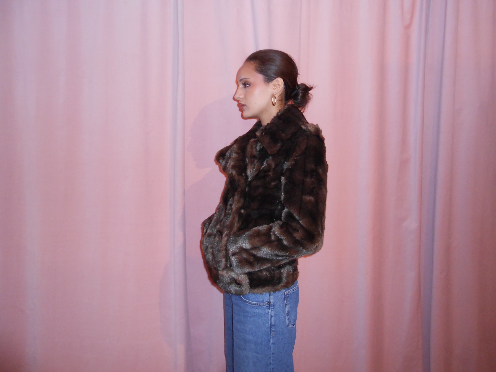 DESCRIPTION : A beautiful faux fur jacket in a military style silhouette. Seen on the runway on Kate Moss in a blonde rendition.
