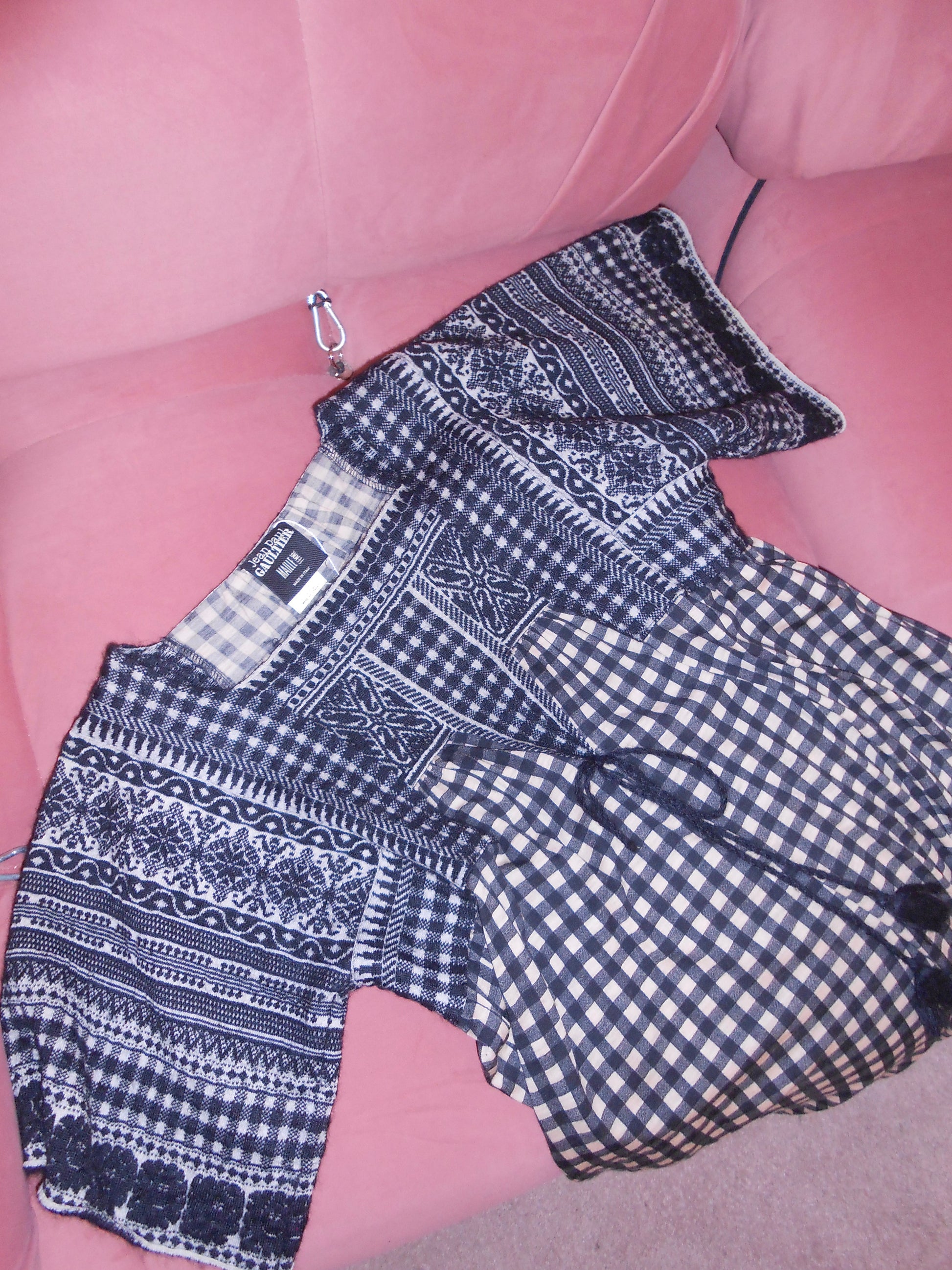 DESCRIPTION : A very sweet wool tunic dress in an allover gingham print, featuring a tie at the front center of the dress. Perfect for the fall / winter season.