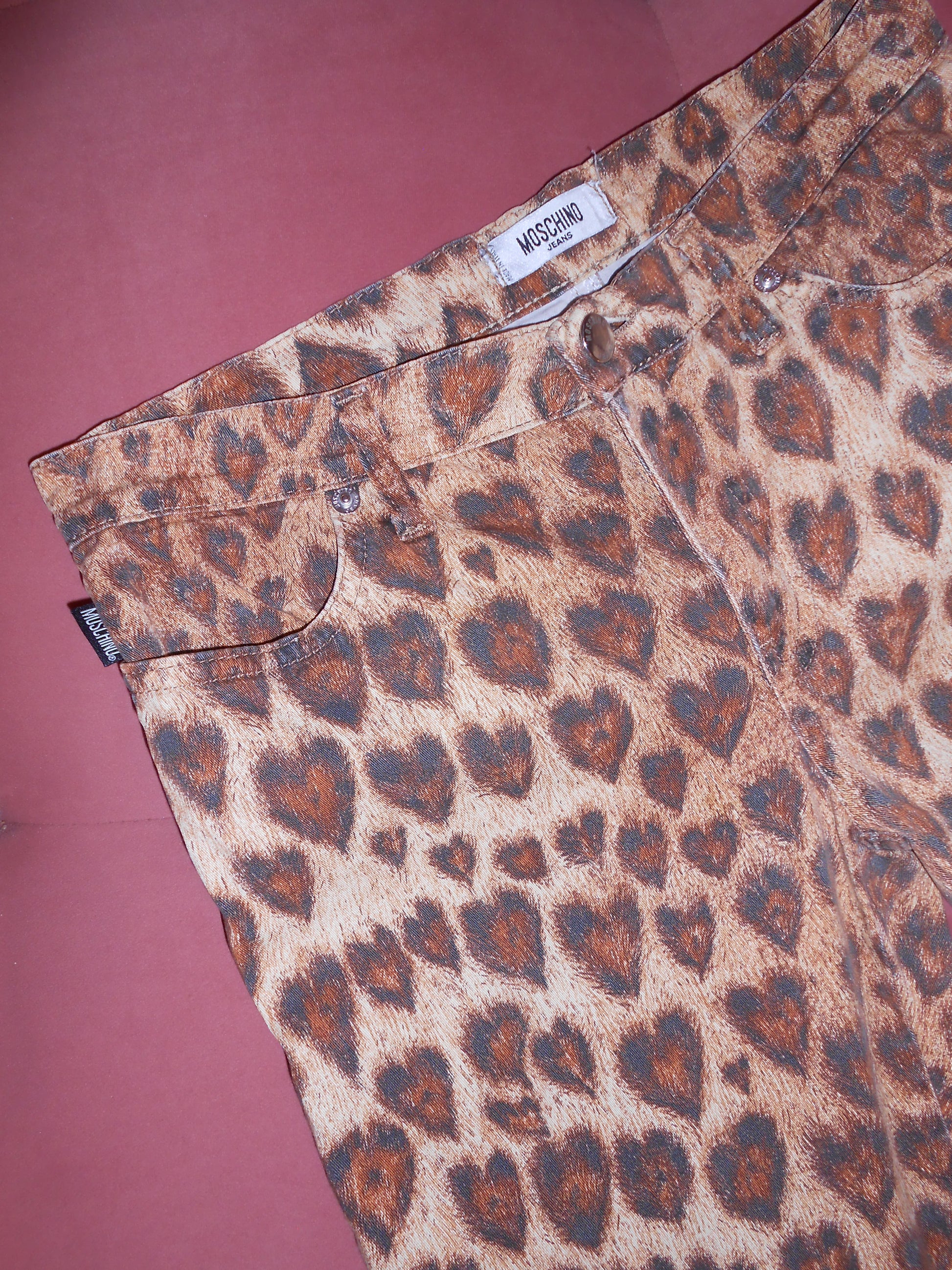 MOSCHINO JEANS EARLY 2000S HEART LEOPARD PANTS