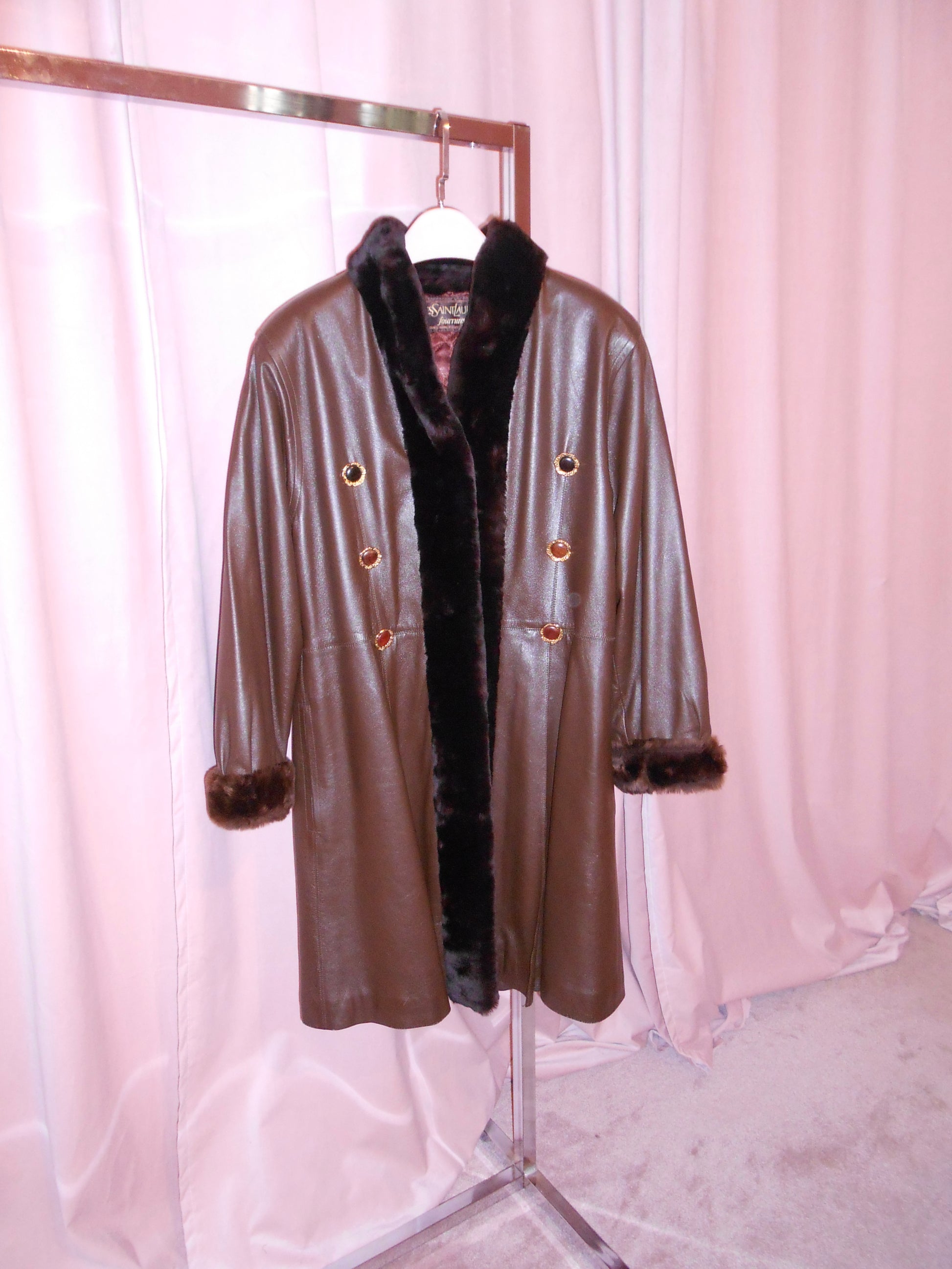 YVES SAINT LAURENT 1990S FUR AND LEATHER COAT