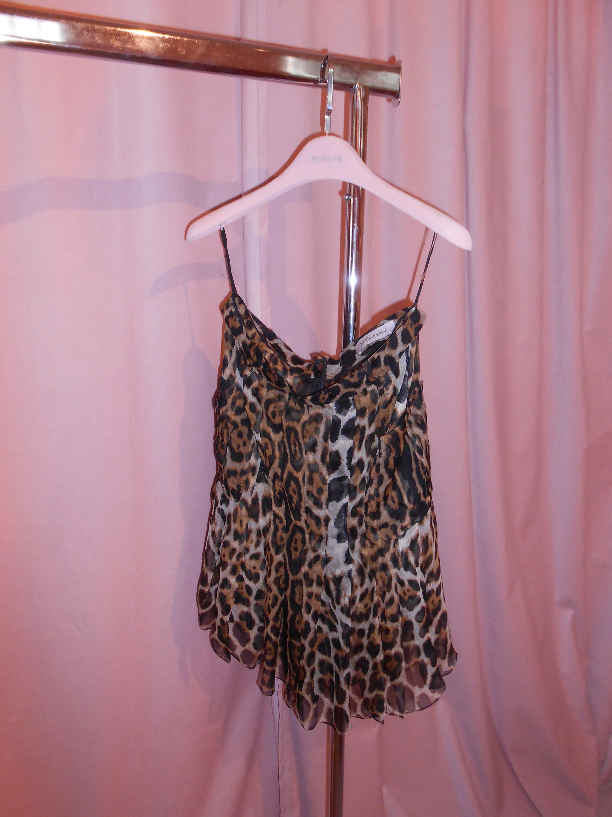 DESCRIPTION : Gorgeous sheer silk jaguar print skirt with two front pockets. Fits mid-waisted and hits at the knee. The skirt is fully lined. This iconic print was seen on the runway in multiple silhouettes.